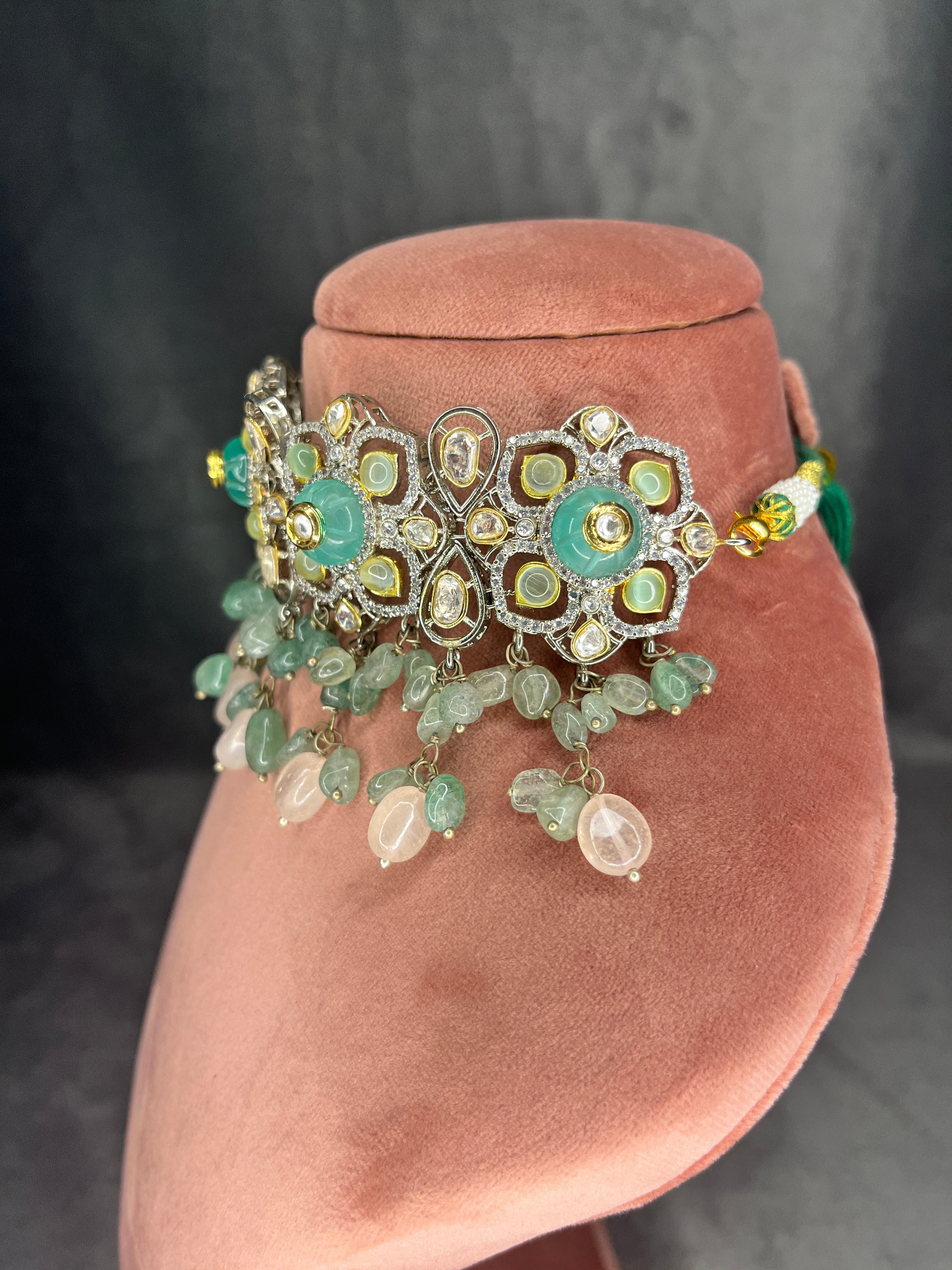 Description: Prepare for a lush green gala with the Emerald Mesh Paradise Necklace Set! These magnificent emerald gems are like a bouquet of elegance and charm, adorning your neckline with grace. Be the life of the party and let the festivities follow your every step.