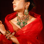 Channel regal elegance on your special day with the Padmavati Royal Bridal Moissanite Polki Set. Complete your bridal look with confidence, embodying the royal allure of this masterpiece.