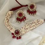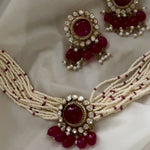 Regalia Red Onyx With Strawberry Quartz And Pearl Moissanite Polki Choker Set