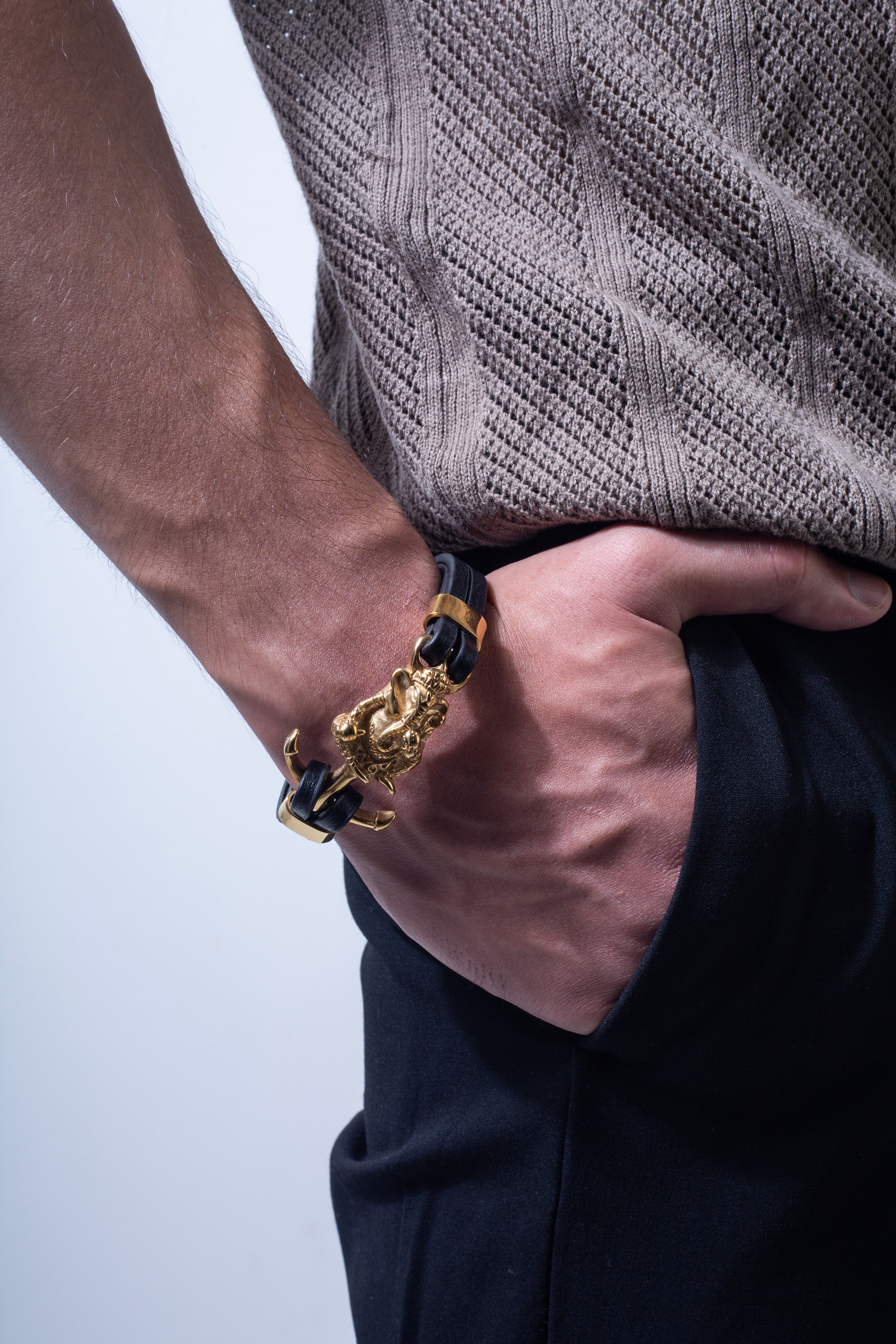 Ganesha Anchor Gold and Black Band Bracelet